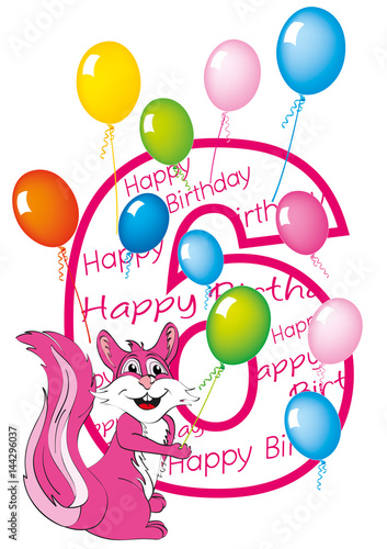 Buon Compleanno Bambina Numero Sei Con Scoiattolo Buy This